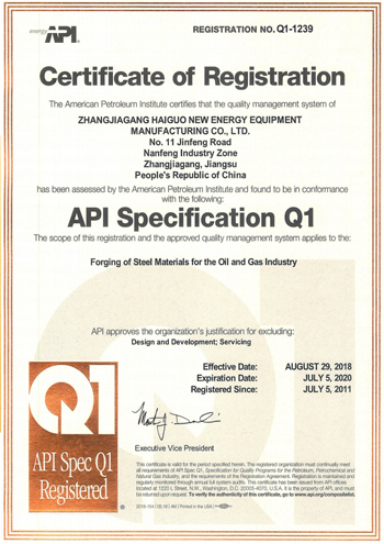 公司取得了美國ABS、法國BV、中國CCS、挪威DNVGL、韓國KR、英國LR、日本NK、意大利RINA等全球八大船級社的工廠認證證書,建立了完善的產品質量管理體系。先后獲得了美國API20B資質證書、API6A資質證書、APIQ1體系證書、TPG的NDT認證證書、TPG 熱處理認證證書、歐盟PED等認證證書,同時也通過了一些國際客戶具有高度專業要求的資格認證。